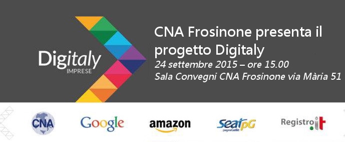 24 settembre 2015 – ore 15.00/Sala Convegni CNA Frosinone via Mària 51. DigItaly è un grande progetto realizzato da CNA, d’intesa con Amazon, Google, Registro.it e Seat Pagine Gialle per avvicinare le piccole e medie imprese italiane al digitale.