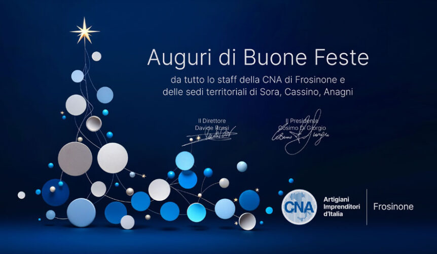 Auguri di Buone Feste da CNA Frosinone Andrea Capobasso 22 Dicembre 2025CNA Frosinone I nostri uffici resteranno chiusi i giorni 24 e 31 dicembre 2025 Articoli correlati:Enzo Zaccari è il nuovo Presidente dei Meccatronici CNA Frosinone 5 Maggio 2025 CNA Frosinone Enzo Zaccari è il nuovo Presidente dei Meccatronici CNA Frosinone.58…Chiusura Estiva Uffici dal 10 al 25 agosto 5 Agosto 2024 CNA Frosinone I nostri uffici di Frosinone, Anagni, Cassino e Sora resteranno…Convegno CNA Frosinone: buone prassi per un miglioramento delle strade… 11 Ottobre 2024 CNA Frosinone Giovedì 24 ottobre alle ore 10:00, presso la Camera di…Auguri di Buone Feste da CNA Frosinone 22 Dicembre 2023 CNA Frosinone Provincia di Frosinone - Nuovo Regolamento Impianti Termici 19 Gennaio 2024 CNA Frosinone A seguito dell’emanazione del nuovo Regolamento della Provincia di Frosinone,…Powered by Contextual Related Posts Condividi