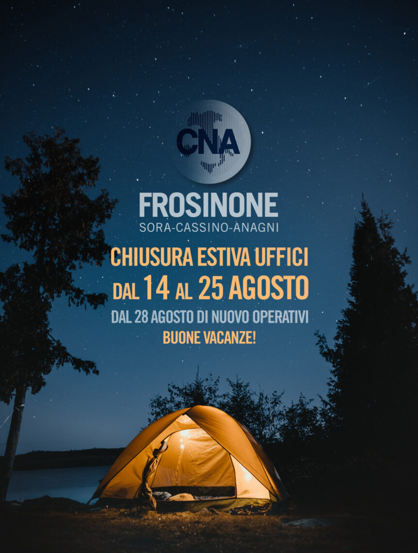 I nostri uffici di Frosinone, Anagni, Cassino e Sora resteranno chiusi dal 14 al 25 agosto. La riapertura è programmata per lunedì 28 agosto 2023.